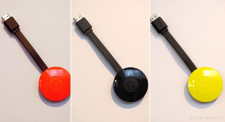 This second-generation Chromecast comes in three colors – black, lemonade, and coral. They're bright. Unless you get black, which we must assume most people will do, as the device is mean to be out of the way in most cases. As it was with the first Chromecast, you'll still need to plug the side opposite the HDMI cable into a power source via a power cable included in the box. You'll also get a power adapter in the box if your TV doesn't have USB power ports built in.