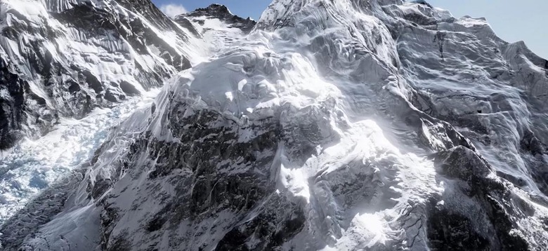Virtual reality is a strange place to visit, particularly when that virtual reality is a mountain you've never been to in person. At CES this week, NVIDIA showed off the HTC Vive Pre VR headset with a Mount Everest demonstration — that is, a snowy digital landscape very carefully created to simulate the real thing, tents and all. Of course, imparting the climbing experience in virtual reality is not really possible, at least not in the absence of a stepping machine and air conditioner. Making you feel as if you might plunge down an icefall abyss, though? They nailed that part.