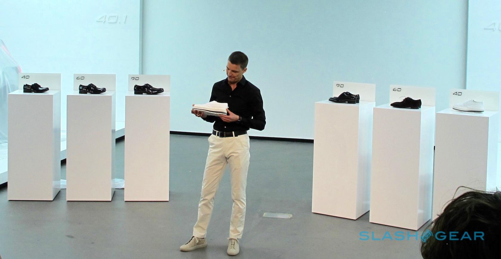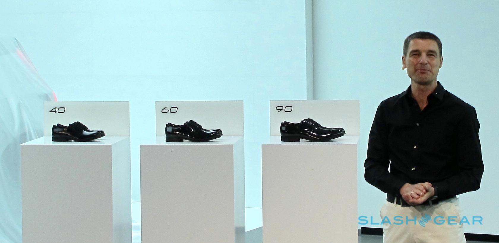 "This is how we could do it, how it's being done," said the German-designing-for-the-Swedes-backed-by-the-Chinese. He ripped the covers off of the first display marked "90," and held up a large black leather dress shoe, representing the large class of cars, the XC90 and S90 for Volvo, and the large offerings from the German competition. The shoe is elegant, beautiful, evening wear or business-chic.