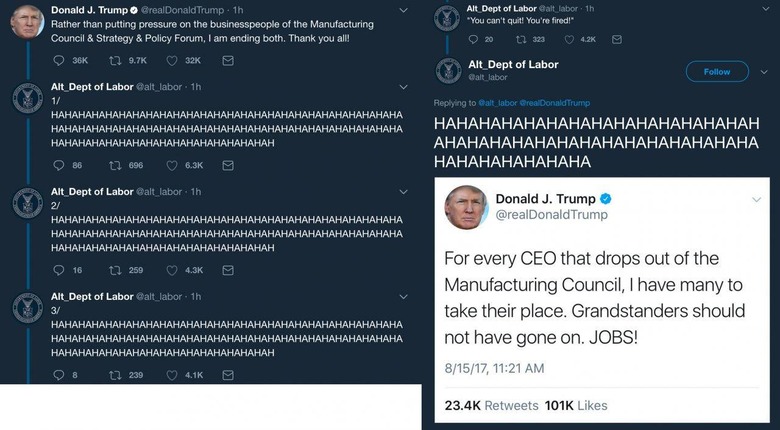 UPDATE: Amid a bleeding set of councils (see below), Trump suggested this afternoon that he was "ending" said councils. His Tweet read as follows: "Rather than putting pressure on the businesspeople of the Manufacturing Council & Strategy & Policy Forum, I am ending both. Thank you all!" The rest of this article remains as it was before this update.