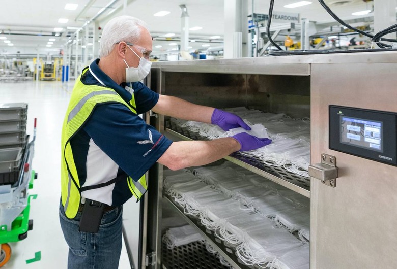 GM already had a cleanroom – approximately 31,000 square feet of which was cleared for mask production – and the workforce is expected to be more than two dozen paid UAW volunteers from its Detroit-area plants. They'll be working in conditions of recommended physical distancing, with pre-entry health screening and enhanced on-site cleaning. If all goes to plan, the target is 50,000 masks each day, which will be distributed via a plan that GM says it's still working on.
