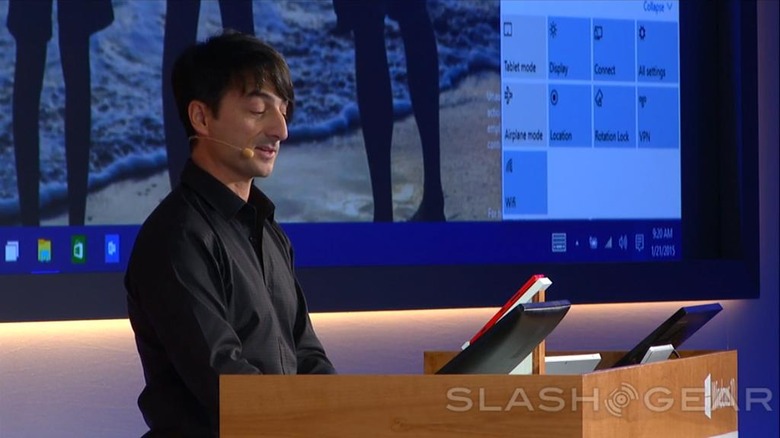 He speaks of Windows 10 for desktop, mobile, and in-between devices like convertibles.