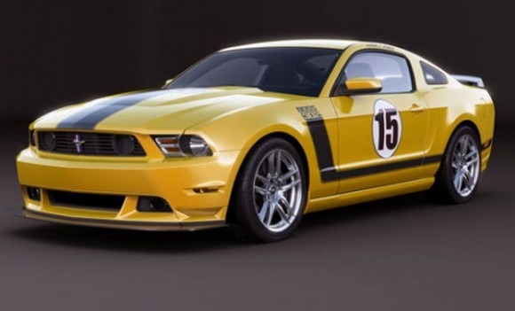 This Boss 302 was designed by Ford Designer Melvin Betancourt. Betancourt designed the Boss 302 to look like the one that famous Ford race driver from the 60's and 70's took the the championship in the Trans-Am series in 1970. The car is painted in a color that will be coming for the 2013 Boss 302 cars called School Bus Yellow. The name of the color is a throwback to the 1970 racing series. It looks orange to me.