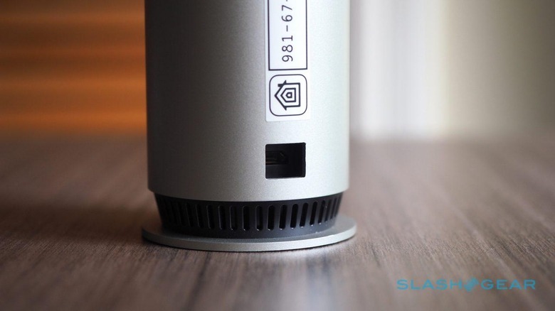There's no denying D-Link has got the Apple design language down to a fault. The Omna's aesthetic is old iSight meets MacBook Pro meets Mac Pro, a narrow cylinder of brushed aluminum punctuated with matte black plastic. It's definitely handsome, though it does sacrifice flexibility for style. Unlike a Nest camera there's no way to angle it, and nor is there any provision for wall-mounting.