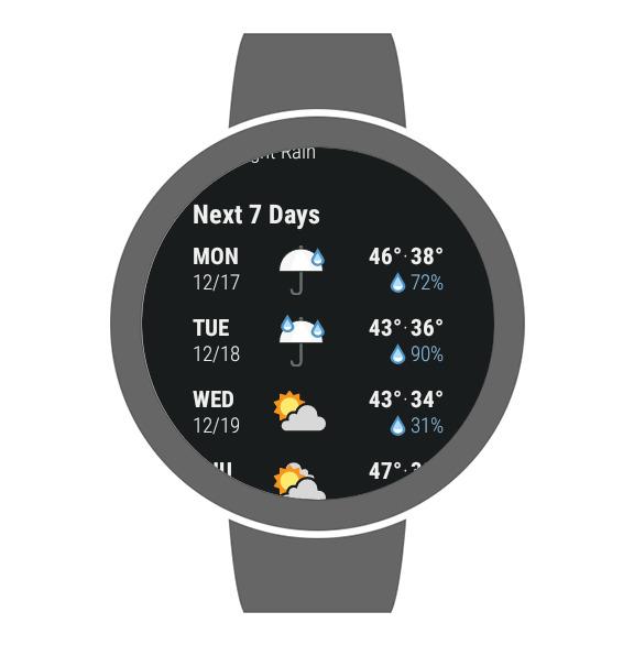 Dark Sky for Wear OS is really no different from the Android version in terms of functionality and features. You get almost the same amount of information, from current weather conditions to forecasts for the next 7 days, all squeezed into a smaller, more easily digested form. So while you do spend last time in the main Android app, you might find yourself spending more time on the Wear OS app instead.