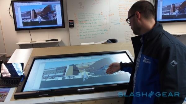 The office was outfitted with wooden plan tables before the tech arrived, and so two have been modified to hold sizable smart displays instead. It's all required a fair amount of investment, but when you consider it usually costs around $3,000 to print off a single set of plans (not to mention that a print-out of the whole facility at typical scale is more than seven and a half feet long) the convenience of going digital, not to mention the greater environmental-friendliness, seem a lot clearer.