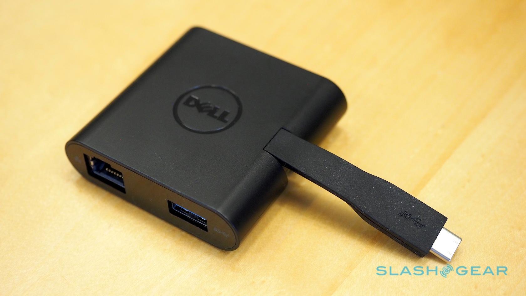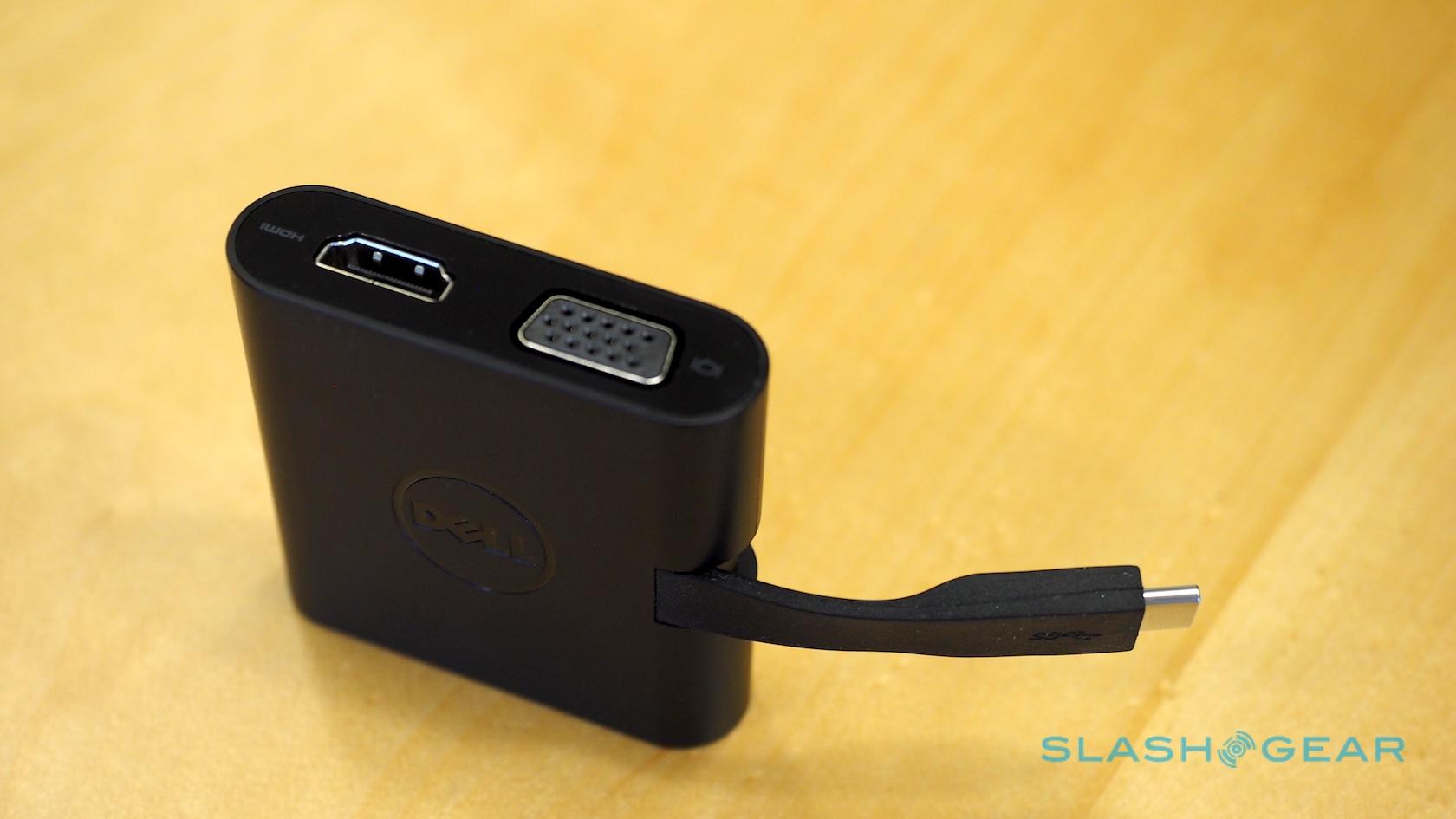 Meanwhile Dell also has a new USB-C 3.0 dongle, complete with full-sized USB 3.0 ports, HDMI, VGA, and ethernet, together with an external power adapter that has both USB outlets for a smartphone and a port for charging a laptop or tablet, too.