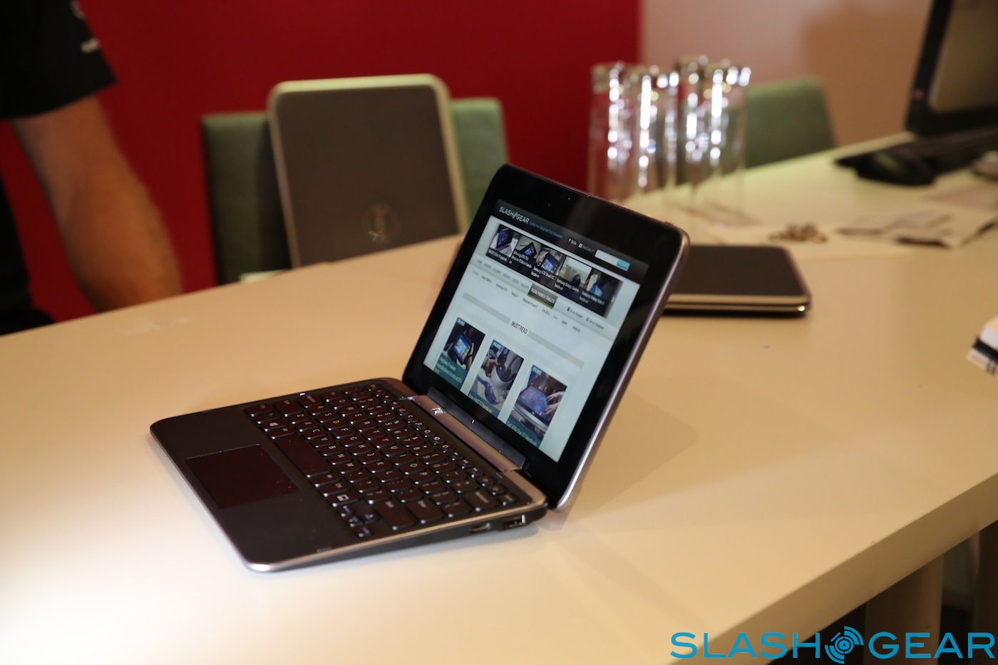At first glance, the XPS 10 looks like a mash-up of Dell's old netbooks and the current XPS ultrabooks. The plastic casing feels sturdy in the hands while still remaining lightweight – Dell isn't allowing people to talk about exact specifications yet, including most of what's going on inside the slate section – though the company has used a Snapdragon S4 processor, Qualcomm has already confirmed.