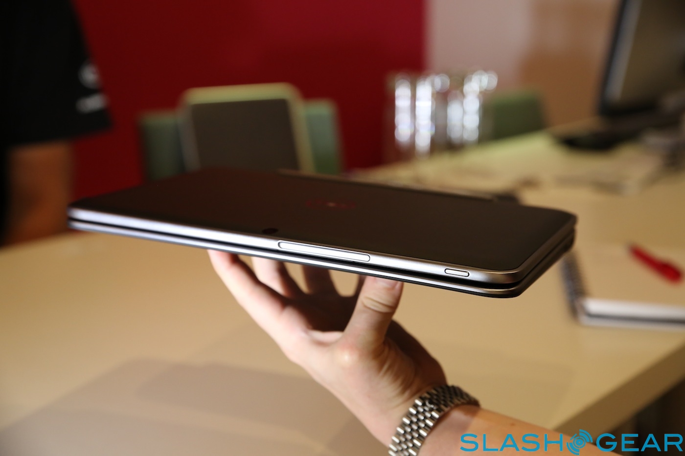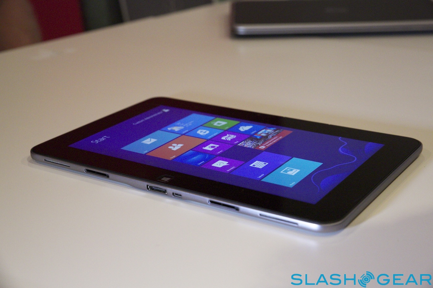 Up front there's an HD-resolution multitouch display that proved responsive at whipping through Windows RT's Metro-style start screen. Although it's just 10mm thick, there's both microUSB and microSD connectivity, though the lower section comes with extra connectivity too as well of the battery. Overall, combined slate and dock can run for up to 20hrs, Dell promises, comfortably exceeding a couple of work days.