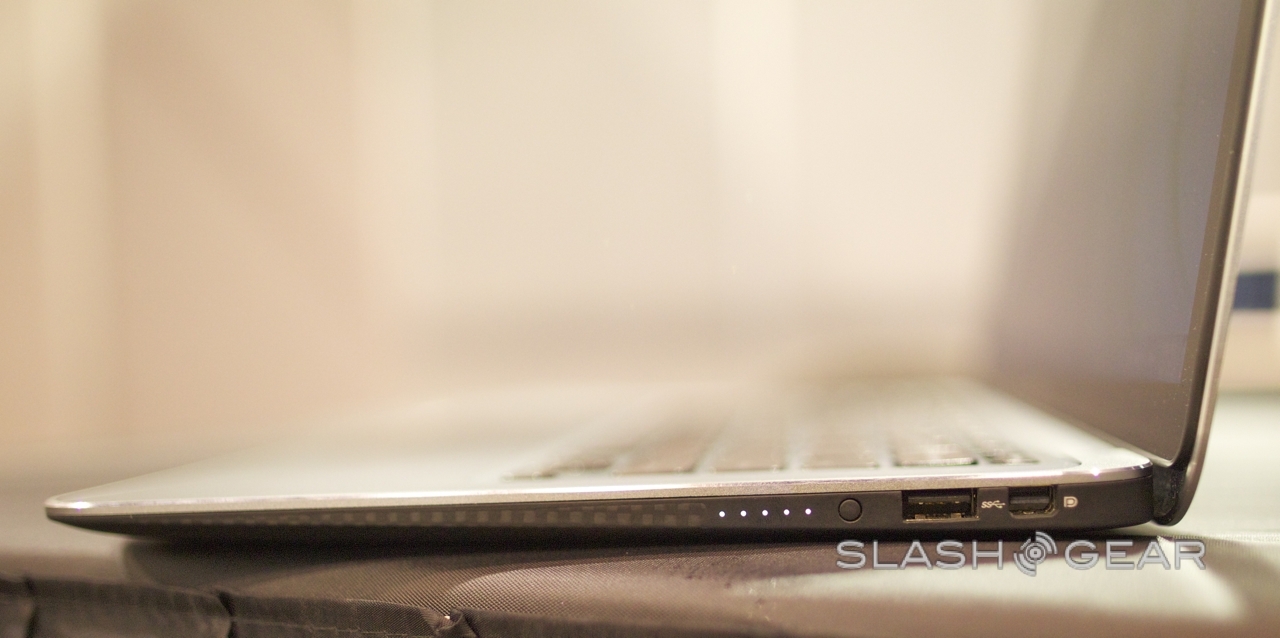 Hands-on, it feels impressively light and thin. The keyboard is nicely spaced and the keys themselves have reasonable travel given the limits of the keytray. There are plenty of neat details, like the battery gage on the side, while Dell tells us that the machined aluminum lid saves even more weight compared to some rival's punched-aluminum production. The speakers are embedded underneath the keyboard, creating a surprisingly loud and clear soundstage, though unsurprisingly they lack some bass.
