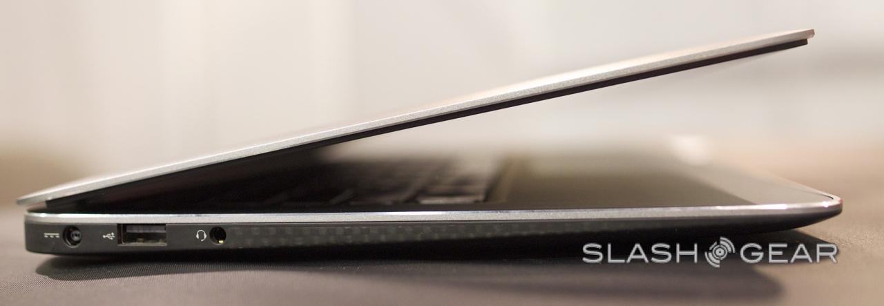 The display is a 13.3-inch 1366 x 768 panel running at 300-nits, and covered in a sheet of edge-to-edge Gorilla Glass, powered by Intel HD 3000 graphics. Above is a 1.3-megapixel webcam and dual-array digital microphone. Connectivity includes WiFi a/g/n and Bluetooth 3.0, a single USB 3.0 and USB 2.0, mini DisplayPort and a headset jack. Unlike some rival ultrabooks, Dell has managed to squeeze in a full-sized backlit keyboard.