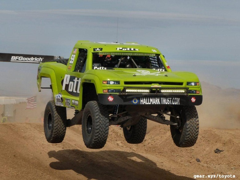 It's hard to adequately describe the spectacle of desert racing. While the Toyota TRD trucks that we piloted through the deep, sandy moguls of the Mojave did their utmost to keep all four wheels planted on the ground regardless of how jarring the surface might have become, the heavy metal assembled for the Mint 400's 25 various vehicle classes willingly shed the bonds of gravity and took to the skies as often as possible, bounding across the tough terrain as though it were the surface of the Moon. You'd be forgiven for thinking that the Mint makes a mint for Vegas chiropractors the Sunday after the main event has been run, but spinal compression is merely one of the stepping stones on the way to the event's $10,000 purse.