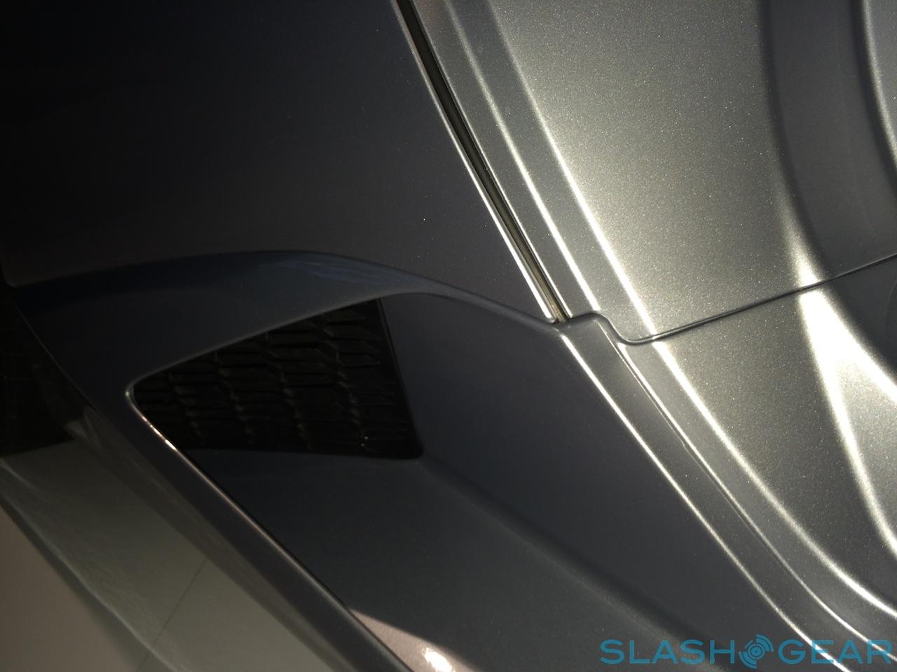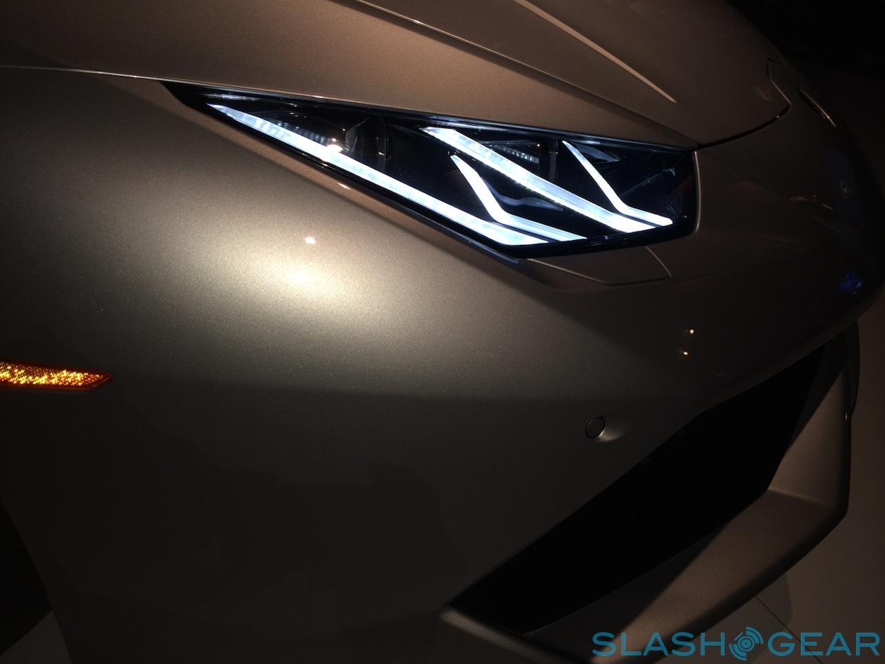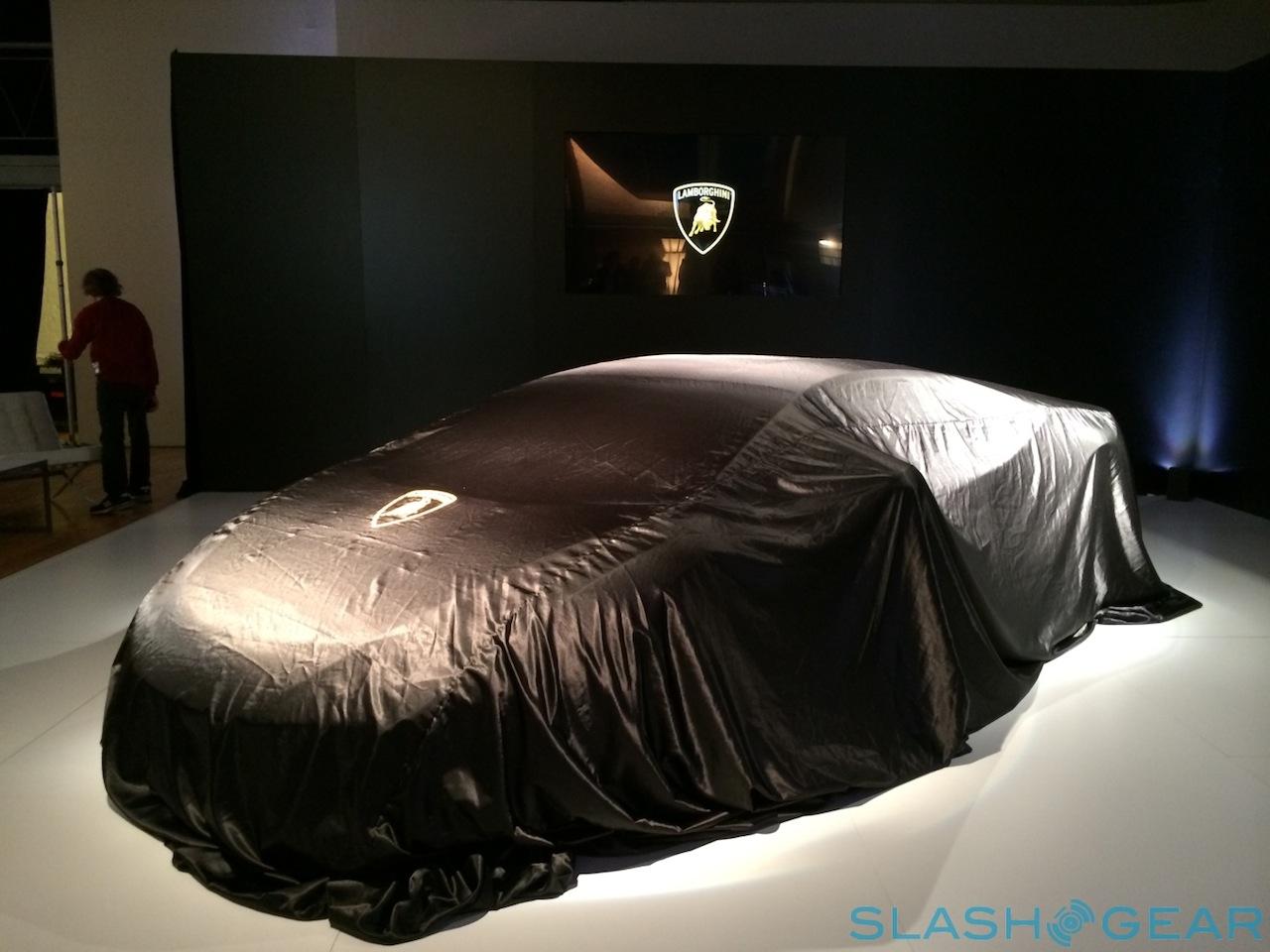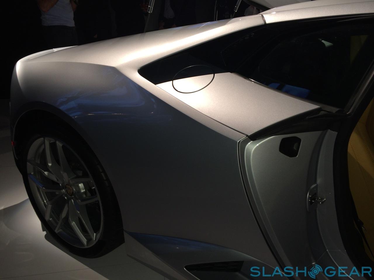So, you get an updated version of the fighter-jet style lamps front and back, first shown on the Aventador, as well as muscular haunches and a rear three-quarter silhouette reminscent of the Countach.
