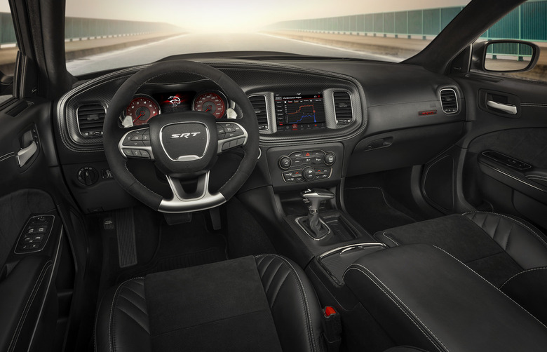 Dodge then throws in SRT-tuned Bilstein three-mode adaptive damping and suspension tuning, with different settings for the street, the strip, and road courses. Electric power steering has been added, also customizable in feel through the SRT Performance Pages accessed via the infotainment system. It should make the car a little easier to maneuver at lower speeds, while still delivering feel when you're pushing hard.