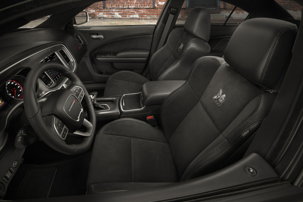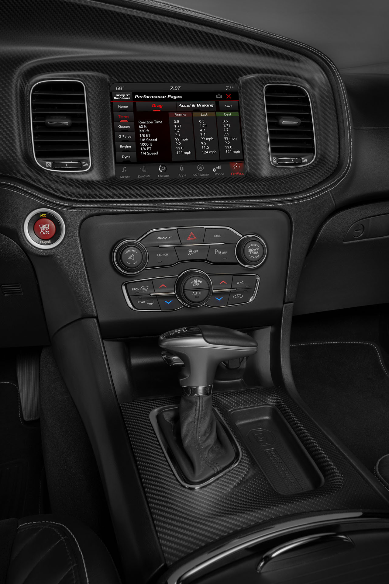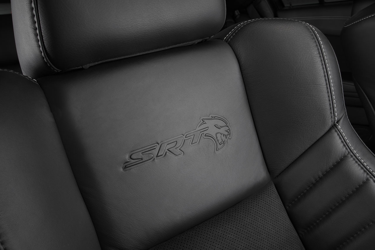 Widebody improvements include a 3.5-inch wider body that allows room for new 20x11 inch Carbon Black forged wheels with sticker Pirelli 305/35ZR20 tires. The car also has an SRT-tuned Bilstein 3-mode active damping suspension and electric power steering. Hellcat Widebody also gets stiffer springs, larger sway bars, retuned shocks, Brembo brakes and more. The car promises 0-60mph in 3.6 seconds and a quarter mile in 10.96 seconds.