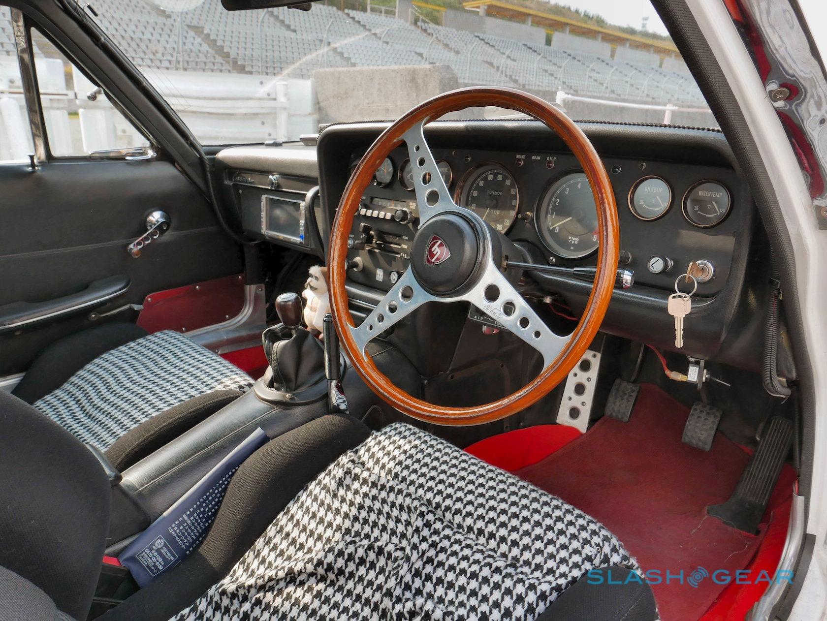 My one lap of Mine – with Cosmo Sport's owner watching parentally from the pit – was an eye-opener. I'd never before encountered an automobile from the 60s capable of such smooth, linear acceleration, with the 10a rotary engine under the Mazda's long hood spinning up to its 7,000 rpm redline with grace and purpose. Despite its age the Cosmo was more than willing to dance through the corners, turning in with precision, and braking predictably and authoritatively at the end of each of Mine's straights.
