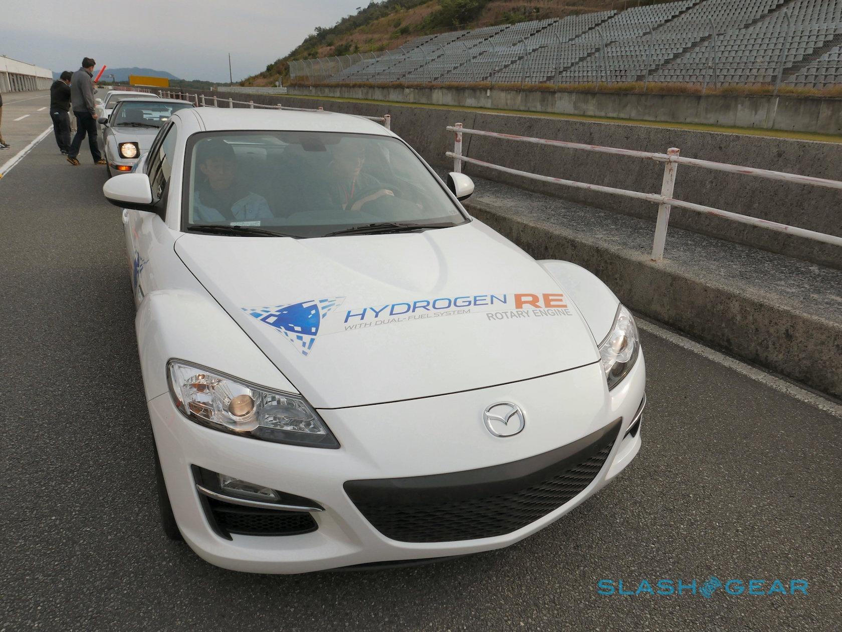 The fifth and final rotary Mazda I sampled at Mine Proving Grounds was perhaps the most unusual member of the group. Eager to experiment with the potential demonstrated by hydrogen as an alternative fuel source, the automaker built an experimental version of its RX-8 sports coupe, which was the successor to the original line of RX-7s.