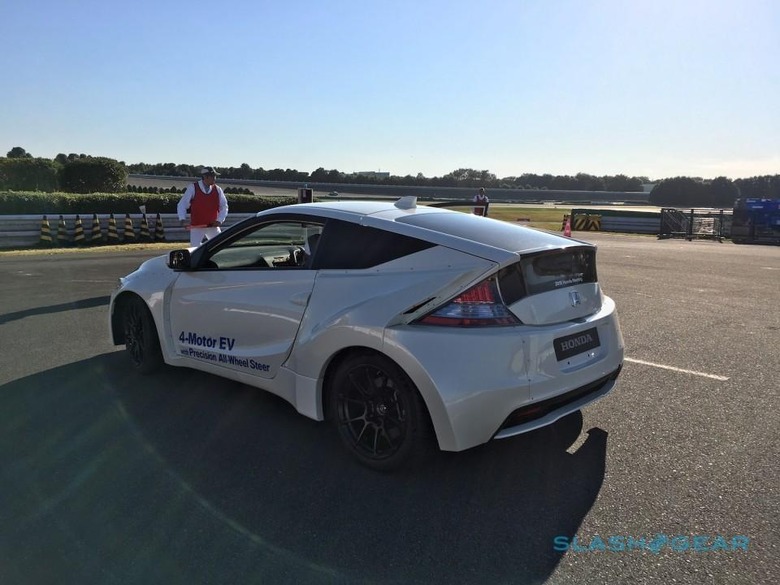 You know something is up when a Honda engineer giggles while he's talking to you about his car. Turns out, the Honda "4-Motor Electric SH-AWD with Precision All-Wheel Steer" prototype – a clunky name for a heavily modified CR-Z – is enough to cut through the usual restrained enthusiasm of Honda Japan's handling experts, and turn them into squeaking fanboys. Then I drove it myself, and instantly understood why.