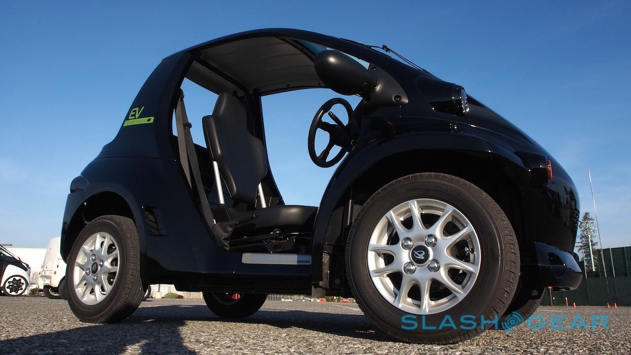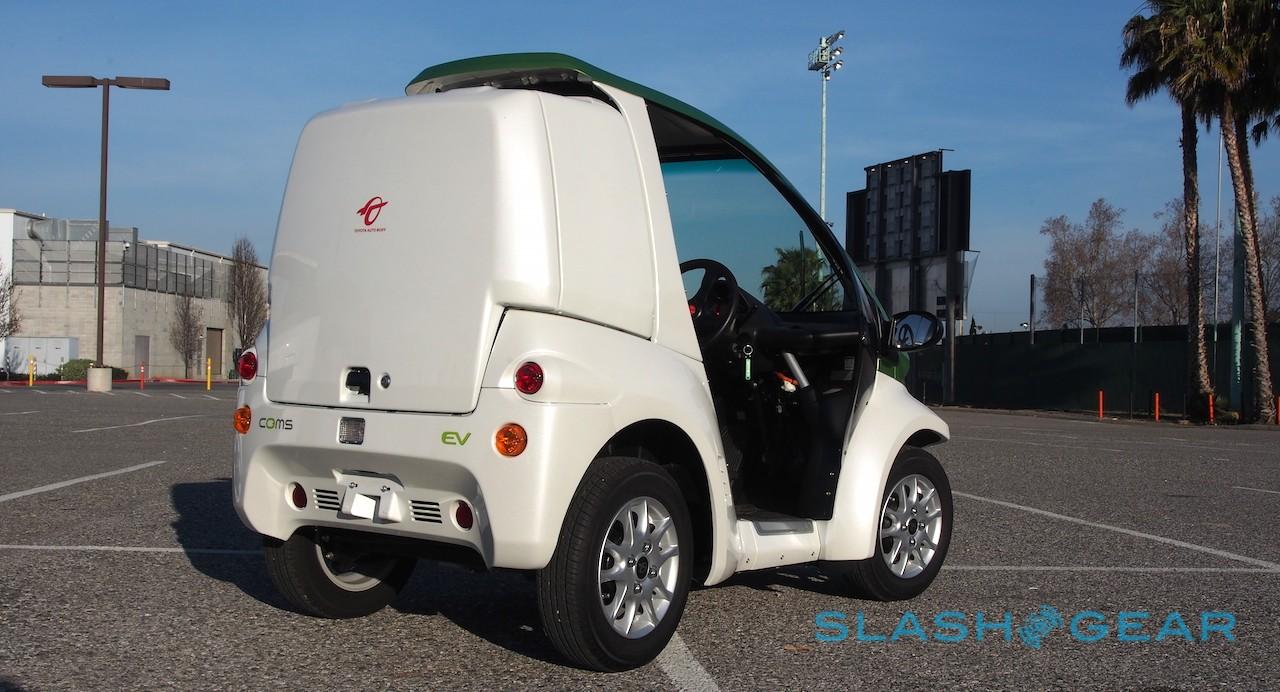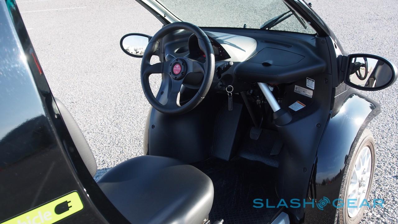 Like i-ROAD, the focus is on the tiny footprint and instant torque rather than taking the whole family with you, though the business COMS does have a large lockable cubby on the back for deliveries. It feels a lot more like a golf buggy than its trike sibling, however, and despite the extra wheel is actually less practical in bad weather since it lacks doors.