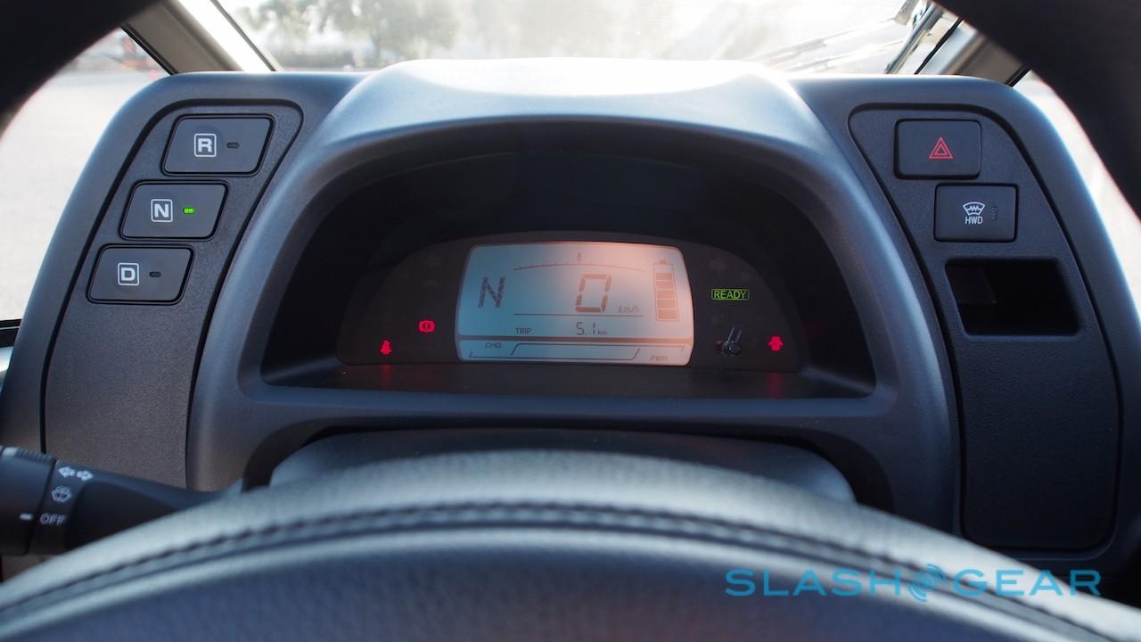 As for the dashboard, that errs on the simplistic side rather than the multiple displays and touchscreens of something like the Mirai fuel-cell car. A small LCD shows speed and battery status, while three buttons – forward, neutral, and reverse – on the left take the place of a traditional shifter. Brake and accelerator pedals are joined by a footbrake pedal.