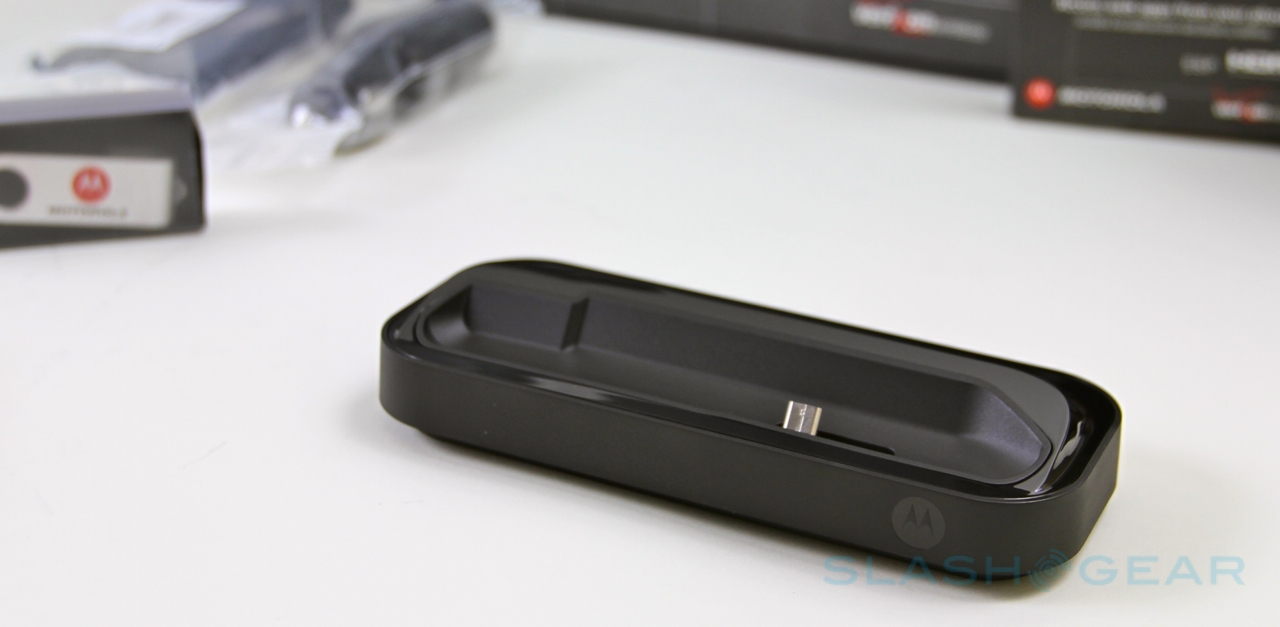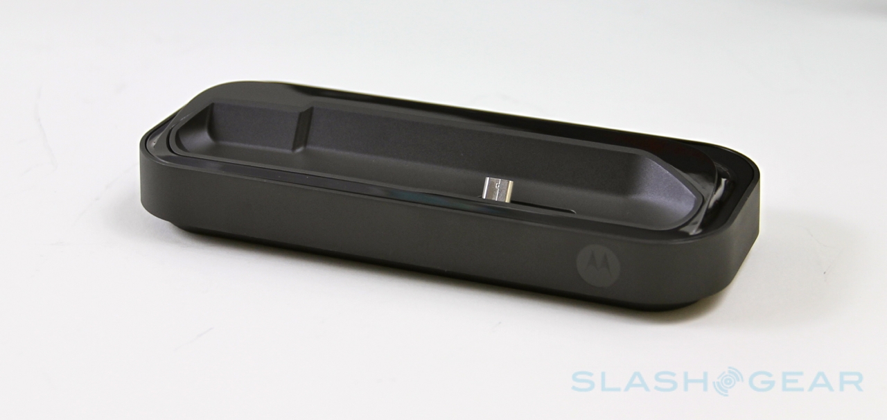 Standard Dock: ($39.99) Identical from the front as the HD Station, turn the Standard Dock around and you'll find the cheaper price means no HDMI or USB connectivity. Instead it's only power and the 3.5mm audio output, and Motorola doesn't include the remote either.