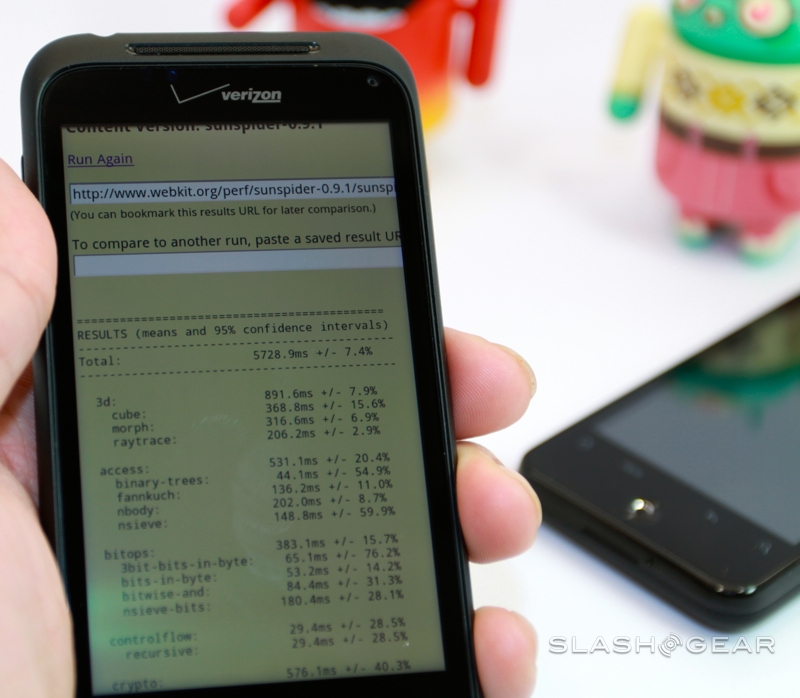 While SunSpider – the test of JavaScript performance in the browser – came in at 5728.9ms.