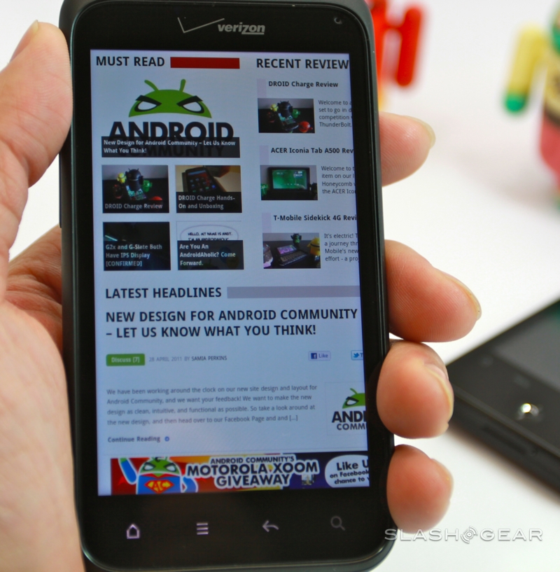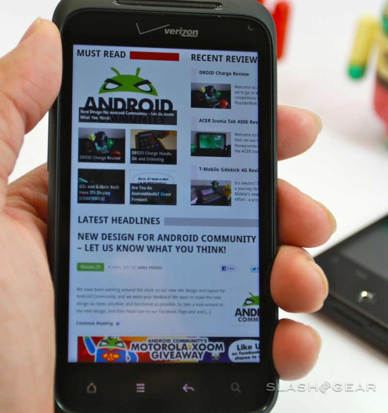 Missing, though, is the HTCSense.com integration the European version of the handset gets. Verizon's phone 't support the online tracking, remote access and other functionality, which takes a bite out of Sense's usefulness. We were willing to overlook its potential impact on the timeliness of core Android OS updates when it offered legitimately unique features, but when those add-ons are stripped away then it becomes more like a mere UI reskin.