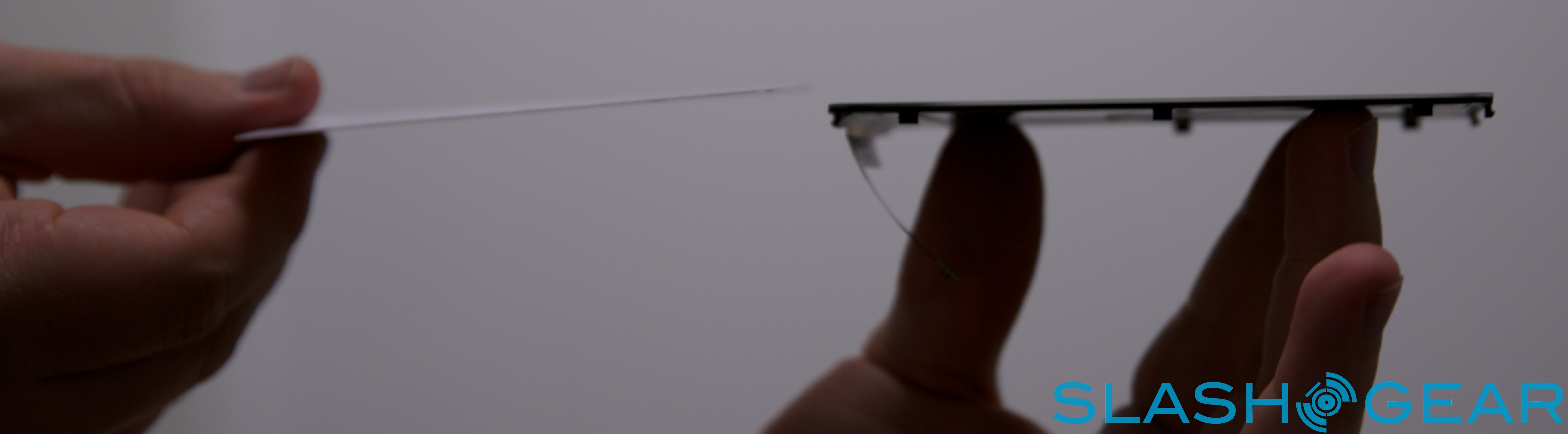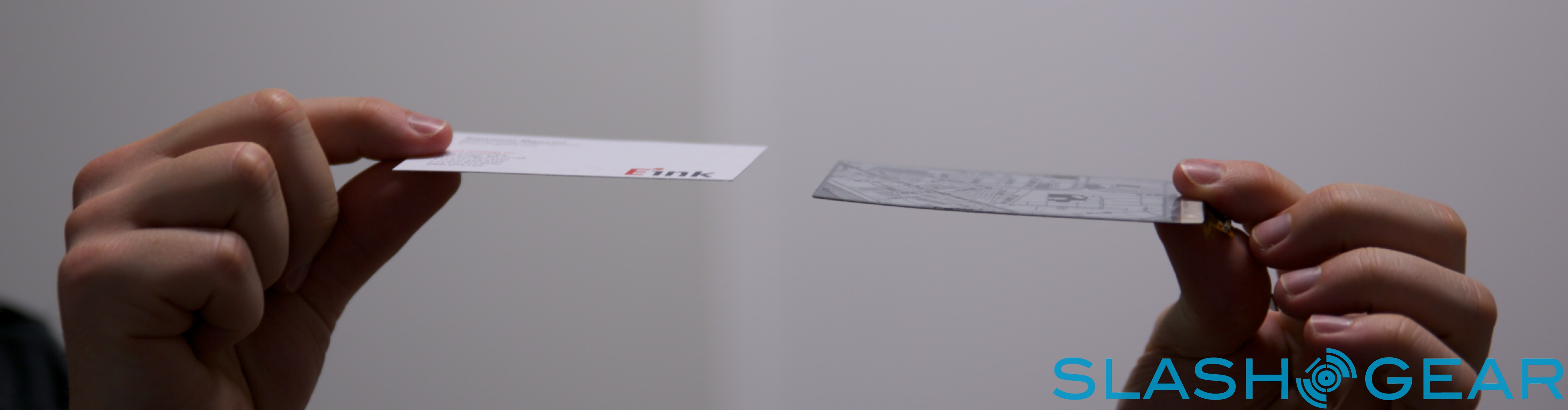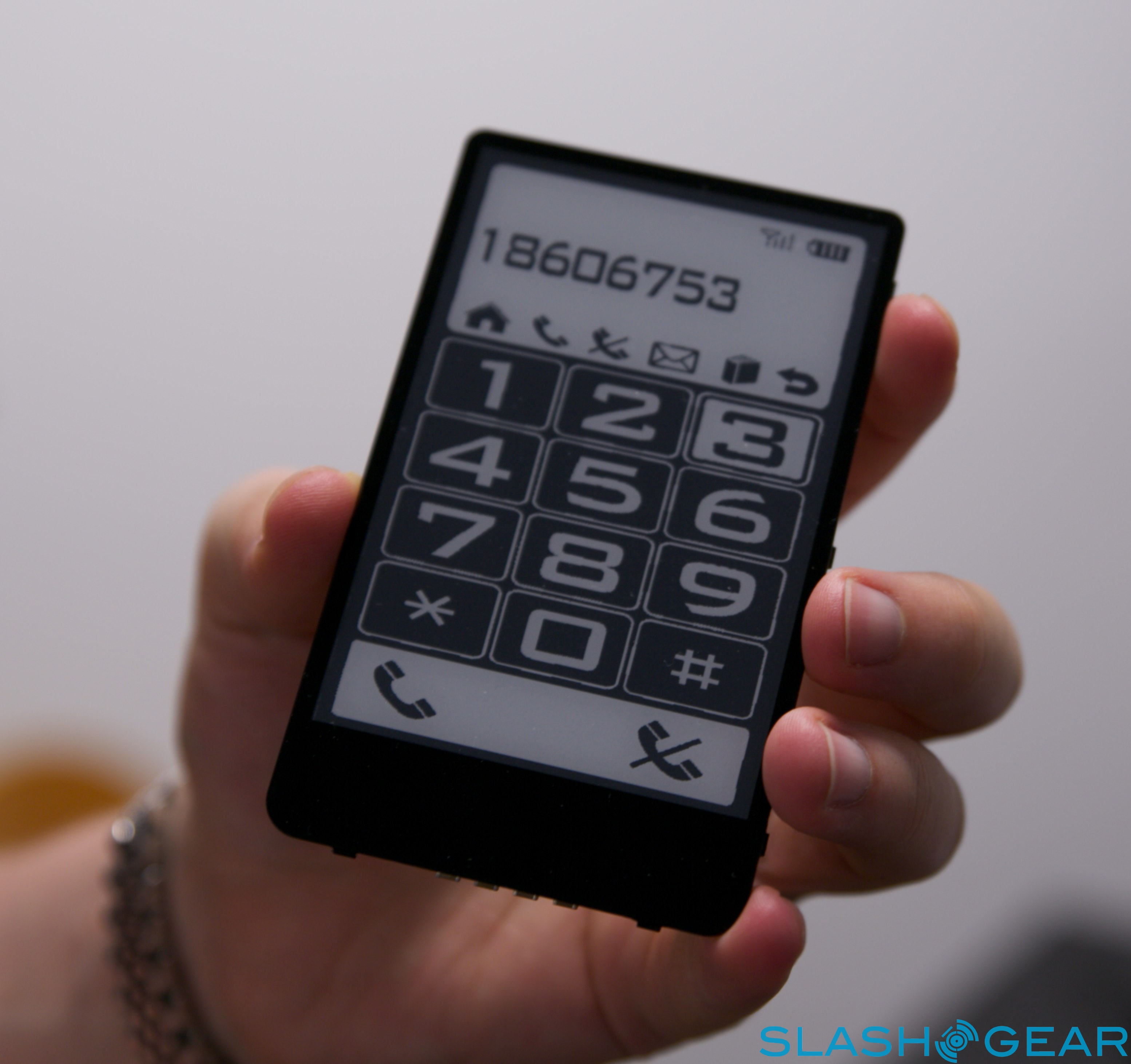 The e-paper display itself is incredibly thin, and even with a protective plastic coating – making it just about shatterproof – is roughly as thick as a typical phone battery cover. E Ink's concepts used functional e-paper, and plugged into a driver unit as per in our video demo were able to change on the fly; the LCD was simply printed on.