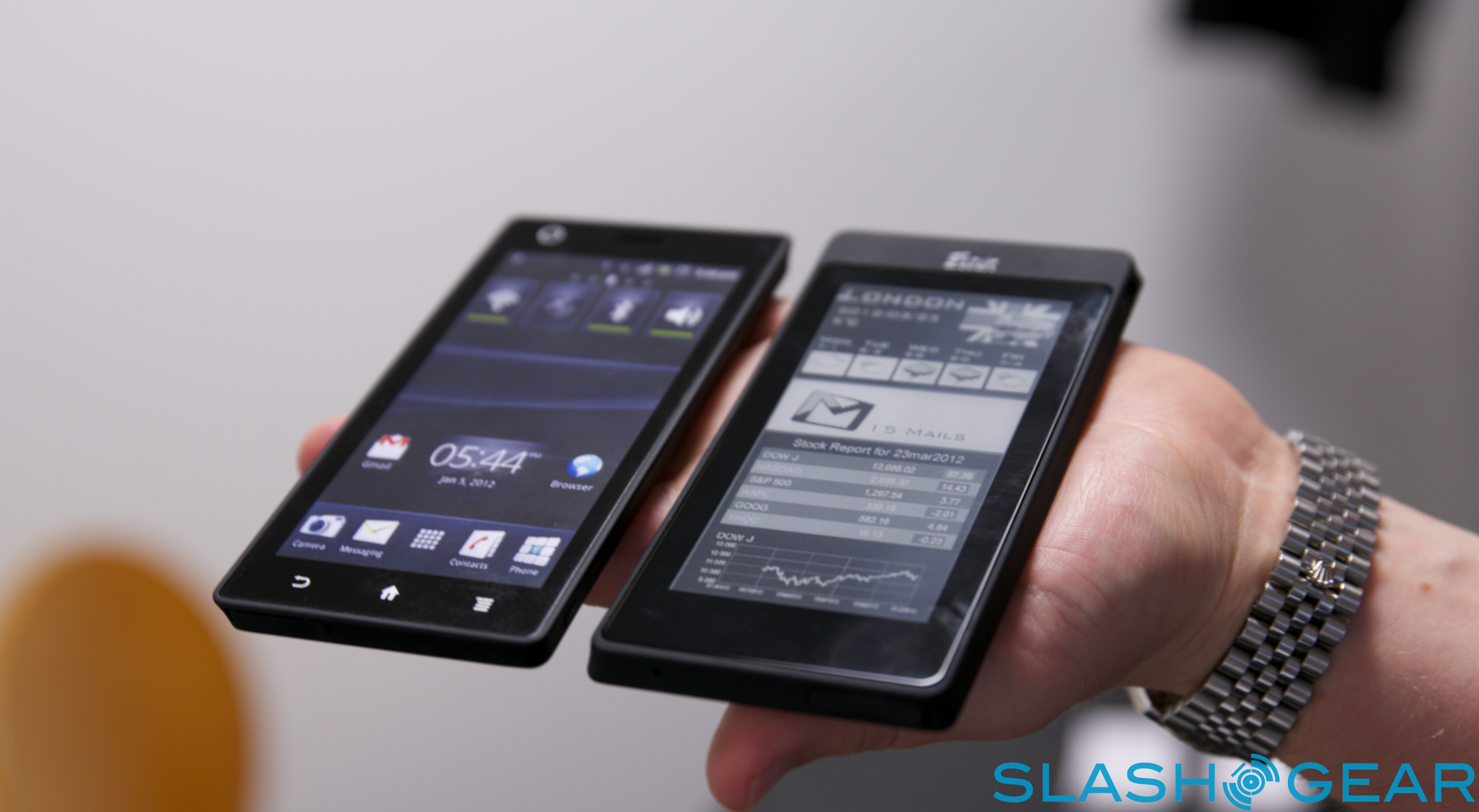 Big-screen smartphones may be the fashion, but how about two sizable screens on your next handset with negligible battery impact. MMtech Online caught up with E Ink at IFA today to check out the company's latest prototypes, intended to spur some imagination among potential hardware partners. The mockups have a working e-paper screen filling the back, and a (non-functioning) LCD up front, offering two ways of displaying content simultaneously. And, while these might be concept devices right now, E Ink confirmed to us that there's at least one vendor looking at using the idea. Read on for a video demo.