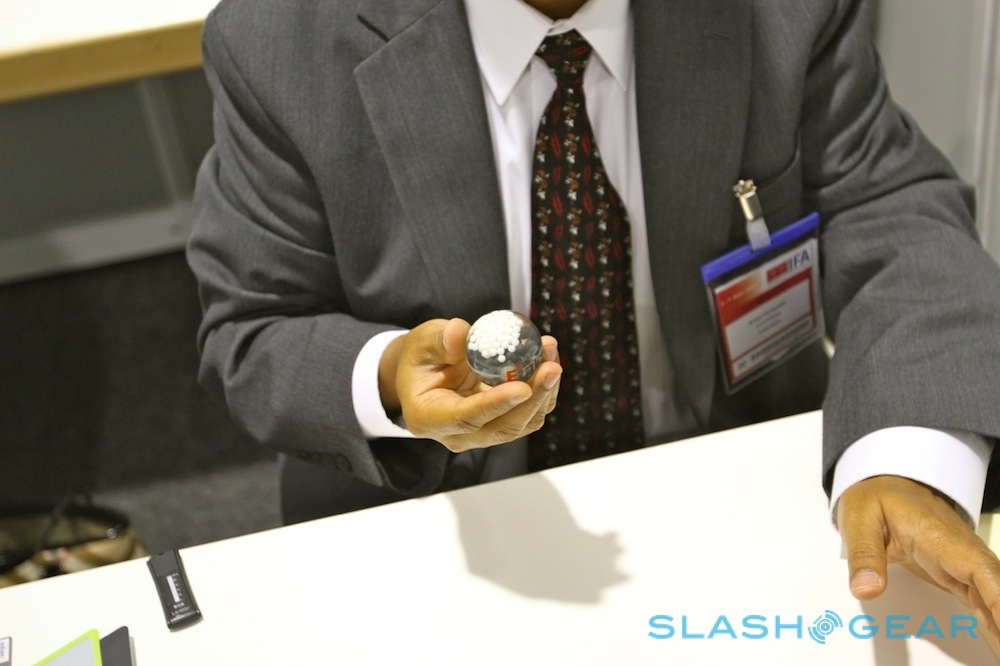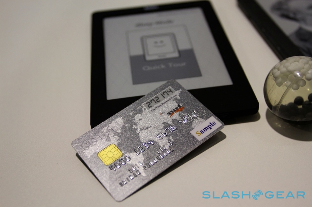 As for bank security, E Ink showed the new generation of its SURF display (Segmented, Ultra-thin, Rugged and Flexible) which can be slotted into a regularly-sized credit card complete with battery and a control button. The screen can show a six-digit code – created with each purchase – to introduce an extra check before the transaction goes through. According to Peruvemba, the battery should last for at least two years before you need a new card.
