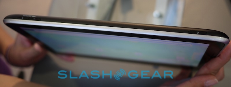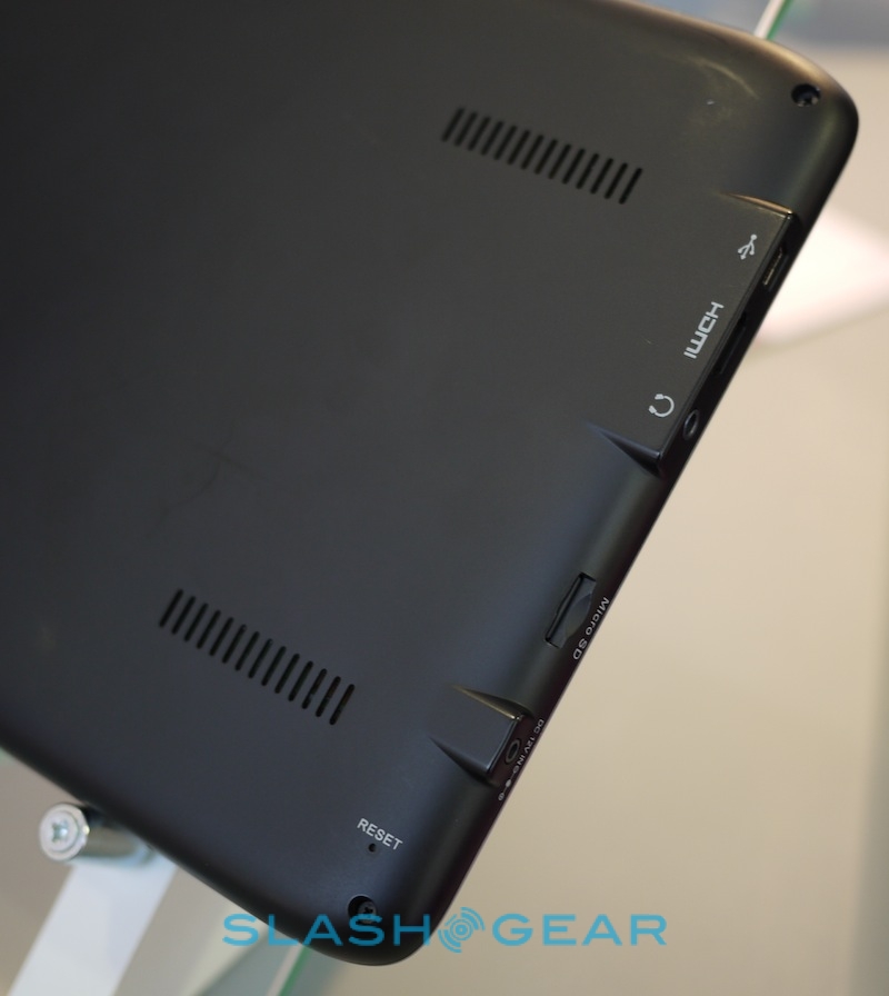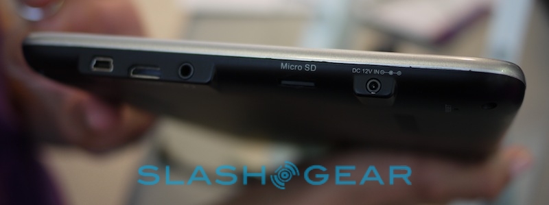 Tegra 2 kept things running smoothly, though with no wireless connection for the Interpad's WiFi b/g/n (paired with Bluetooth 2.1 as standard) we couldn't try out the browser. It'll play back up to 1080p video (supporting MPEG2, H.264 and VC-1 codecs, among others) and E-Noa are still claiming an ambitious 8-12hrs of battery life from the 3,500mAh pack. That sizeable battery adds up to a hefty slate, though it's a little thinner and a little lighter than Toshiba's Folio 100.