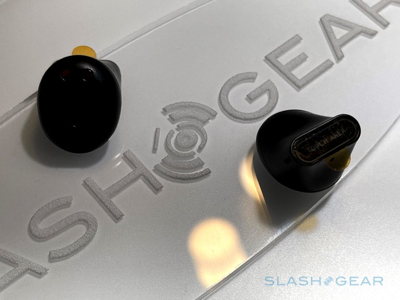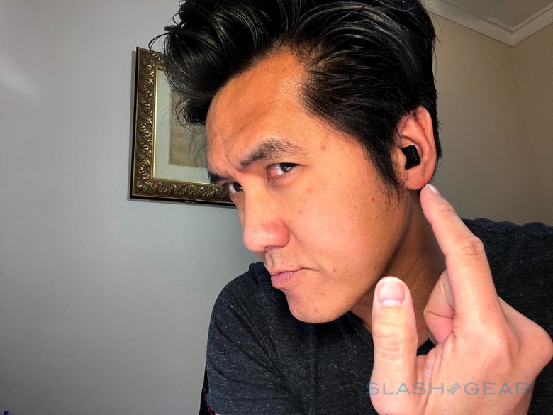 One rather unique aspect of the Earin A-3's design is that there is no left or right buds. Both are identical and can be used on any ear. It uses accelerometers to determine which bud is in which ear and adjust the audio as needed. It pretty much depends on how the buds are oriented, which is also the trick it uses to determine that you've handed one bud to someone else, in which case it switches both to mono audio. The Earin A-3 also has proximity sensors to determine whether they're on an ear or not to pause or resume playback as needed.