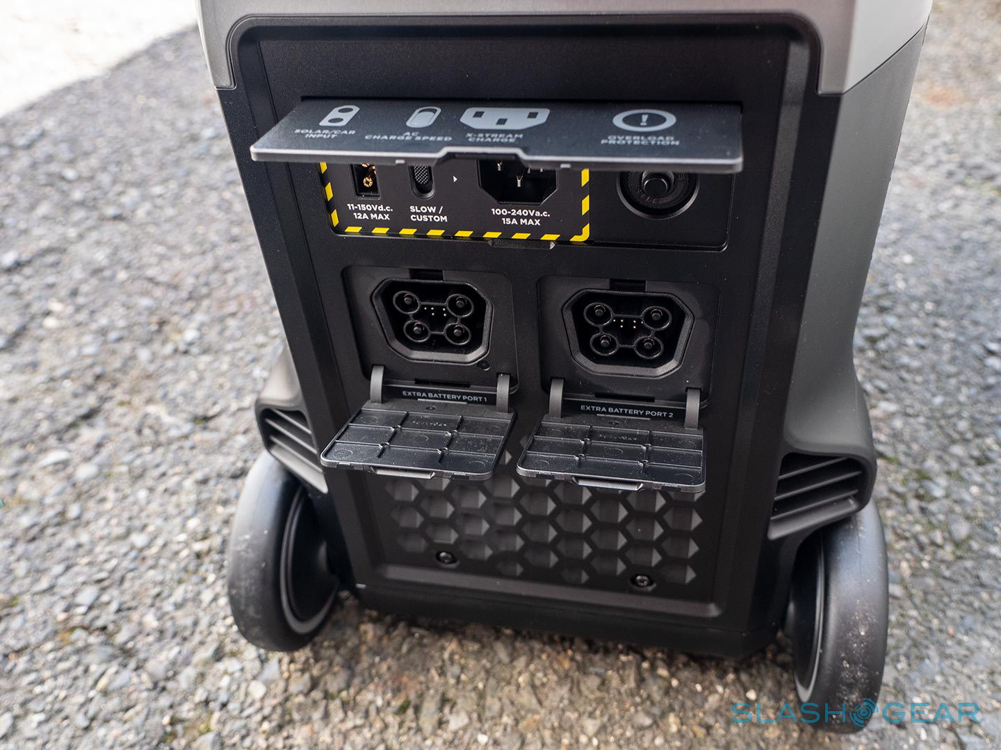 One of the panels to the side, however, provides more options, including an Anderson Port for RVs, a car outlet, typical barrel-type DC ports, and some connectivity options for an optional remote control and Wi-Fi and Bluetooth buttons. The bottom flap houses EcoFlow's Infinity Port that can be used for both AC output as well as input from an EV charger.