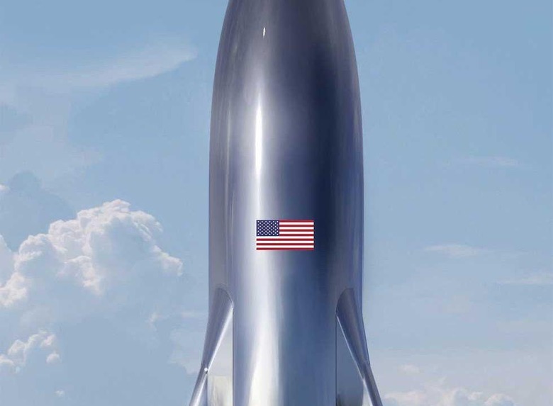 The tweeted image shows a shiny rocket that looks like something out of old science fiction. Musk notes that an operational Starship would have windows. Some have pointed out that the image Musk Tweeted has a rather poorly photoshopped flag on its side.
