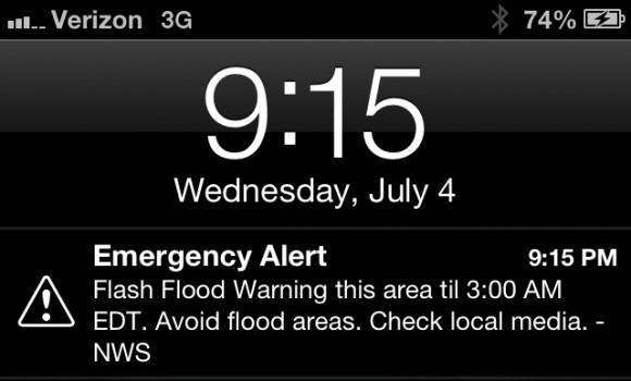 For example, a flood warning in New York City earlier this week triggered millions of SMS messages to people in the tri-state area, if they owned a phone on a major carrier. However, that doesn't necessarily include those with an iPhone. Apparently the existing version of iOS doesn't support the automatic texting system, and it will – in order to comply with the law – in iOS 6. But it will allow users to opt out from those alerts. The only messages that can not be averted are "Presidential Alerts," which are used for national security.