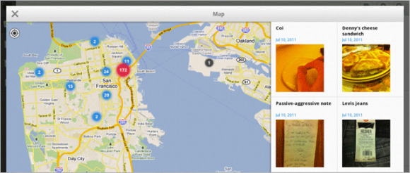 Map View is an awesome feature that allows you to see the notes you've written attached to the GPS coordinates from the place you typed them. You can tap each blue mark with a number inside it to bring up a column of notes. From there you're able to connect to single note view or hit your back button to get back to mapping.