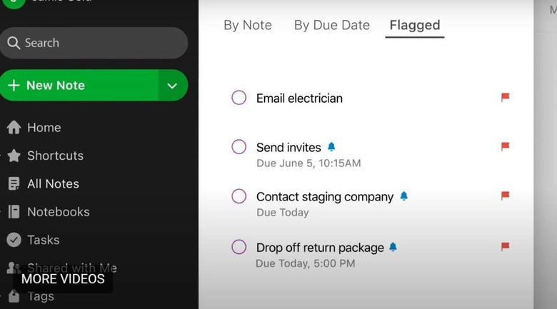As well, users can open their list of to-do items in Evernote's sidebar, including toggling between notes based on due dates and whether they've been flagged. Changes made to tasks accessed through, for example, a note, will also be reflected in the sidebar. Users can add up to five reminders for a note and can choose to get notifications for important tasks.