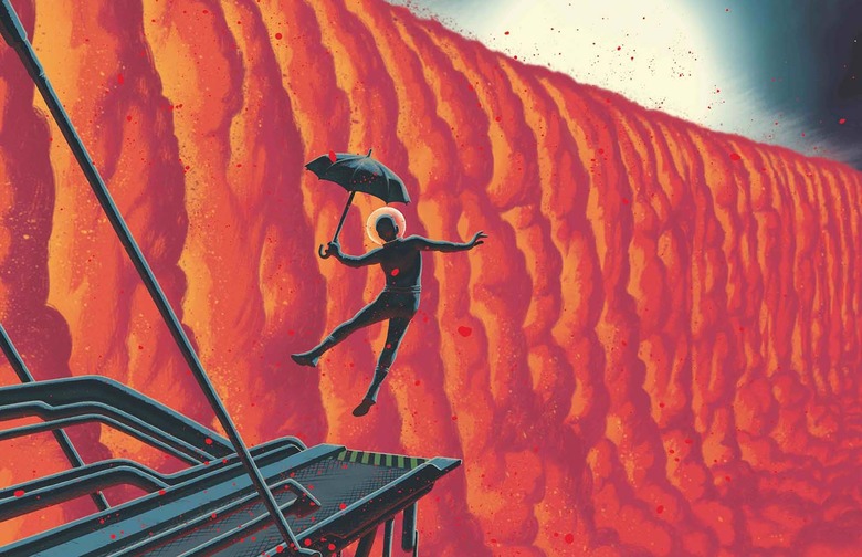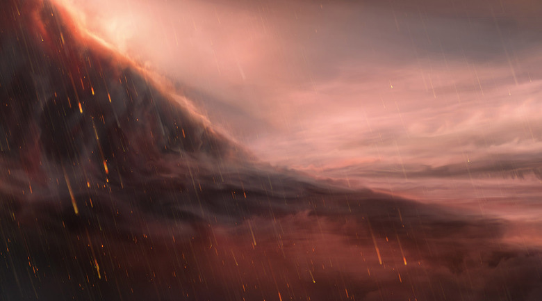 WASP-76b is located in the constellation of Pisces around 640 light-years away from Earth. We don't have any actual images of the planet's surface at this point in time, but the ESO shared two artists' impressions of what the planet may look like, including the fun illustration above with a floating person holding an umbrella.
