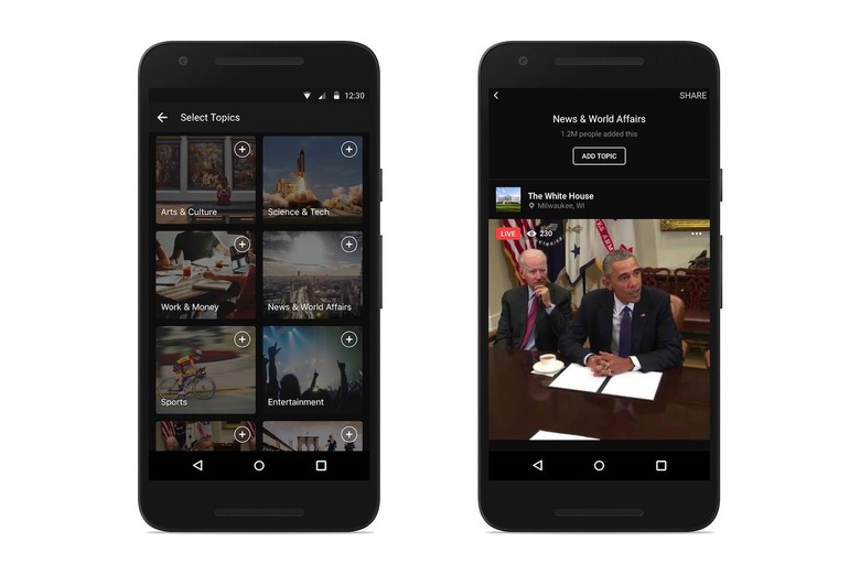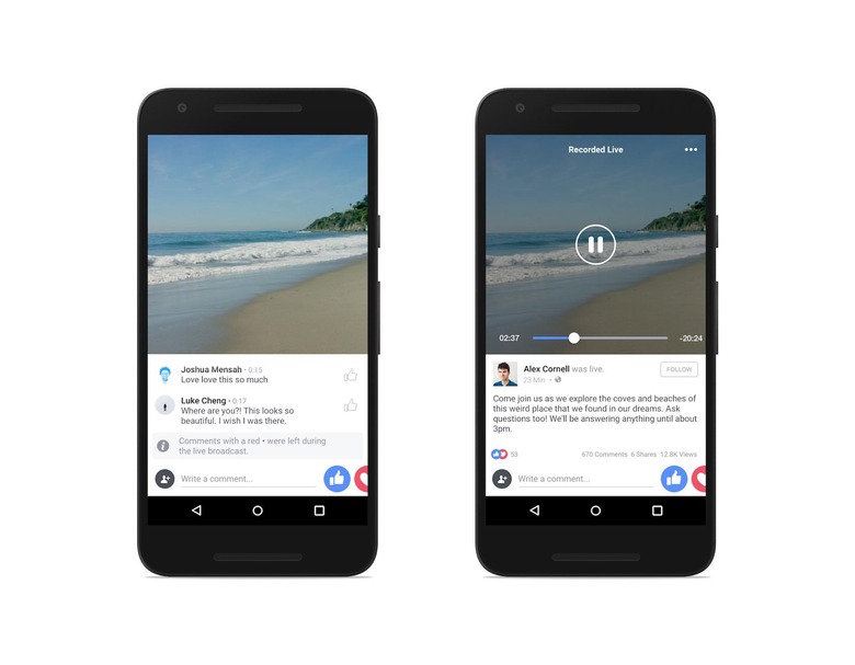 All this extra focus probably deserves a more prominent place for Facebook Live in the app, and sure enough there's a new "Live" tab. That'll show what's being streamed in real-time and what's available to rewatch, along with offering easier access to kicking off your own broadcast.