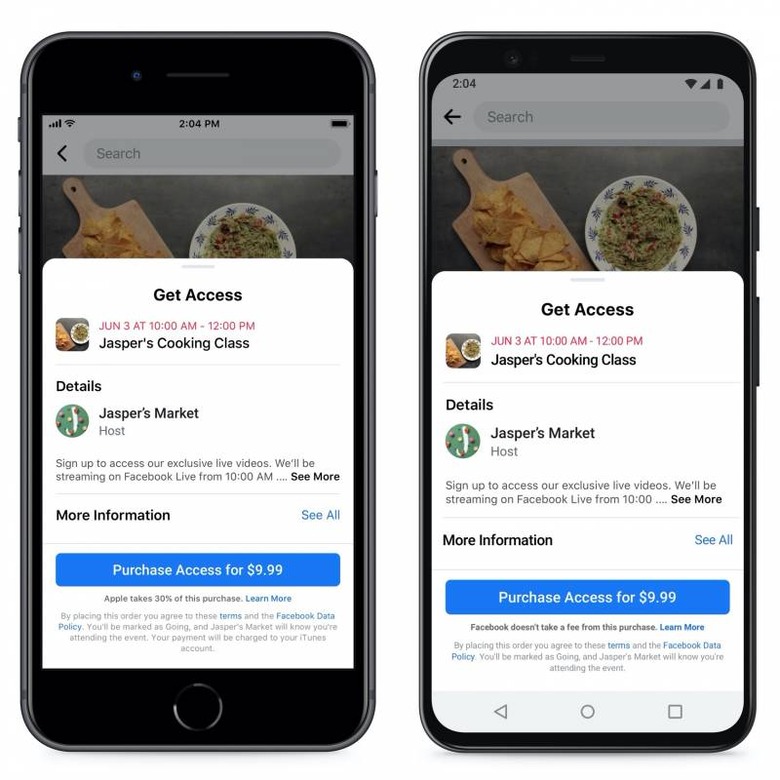 Event organizers will get all of the fees that participants pay, if they're making that payment either via the web or on Android in countries where Facebook Pay is available. However, Simo says, when Facebook approached Apple about allowing the social network to exclude these payments from the 30-percent cut it takes on revenue made through the App Store, the Cupertino firm couldn't be budged. As a result, those who sign up to paid events through an iOS device will pay the same amount, but not all of it will go to the event holder.
