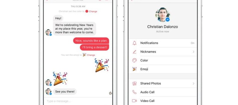 Says Facebook, "you can really make Messenger your own space" with the new customization features. Users are able to change nicknames for friends rather than using their formal names (you can change your mother's name to "Mom," for example), and conversation threads can be colored coded according to people.