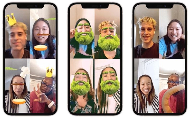 Users can access Group Effects by tapping the smiley face on a call, then selecting Group Effects. Generally speaking, augmented reality filters and experiences have been isolated to one user. Group Effects evolves the experience by enabling two or more people located in different places to participate in the same AR game or present their own AR filters during a call.