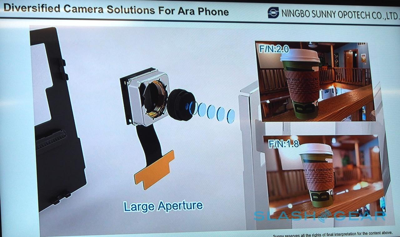 That's what Ningbo Sunny Opotech is looking at, a range of swappable cameras that – similar to how a DSLR can be outfitted with task-specific lenses – would each give an Ara phone a different optical ability.
