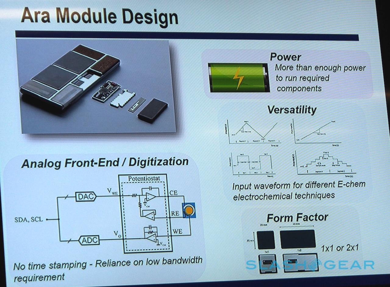 One mHealth project is being led by Professor Drew Hall of the Biosensors and Bioelectronics Group at the University of California, San Diego. His team had already cooked up a sample testing adapter that could plug into a smartphone's headphone jack, but found that by switching to Ara they could offset much of the onboard processing into the modular phone's own hardware.