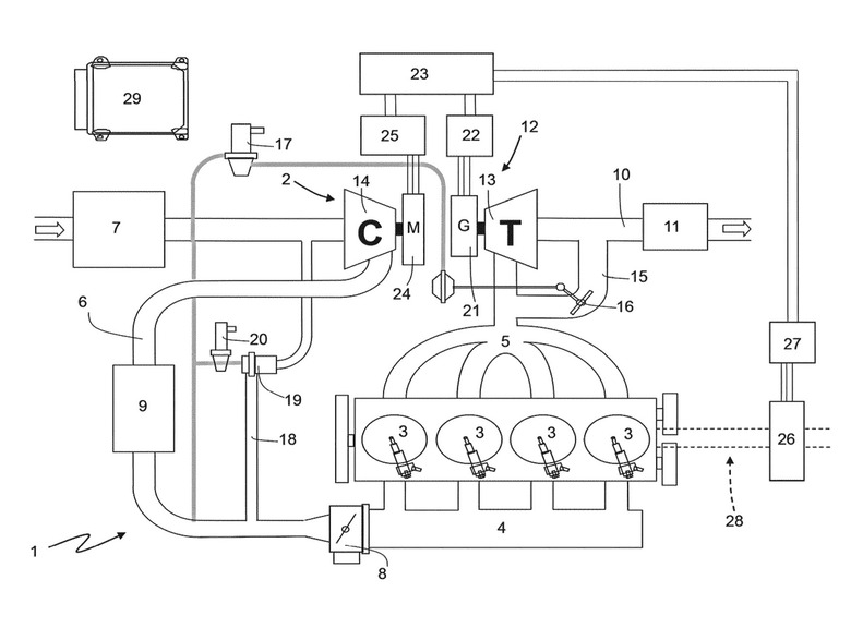 A possibility is outlined in a recently-published European patent application, spotted by AutoGuide, describing a potential electrically-operated turbocharger. Intended to be deployed in a supercharged internal combustion engine, the turbocharger could not only compress air that would be used to help drive the engine, but also power electric motors on the wheels.