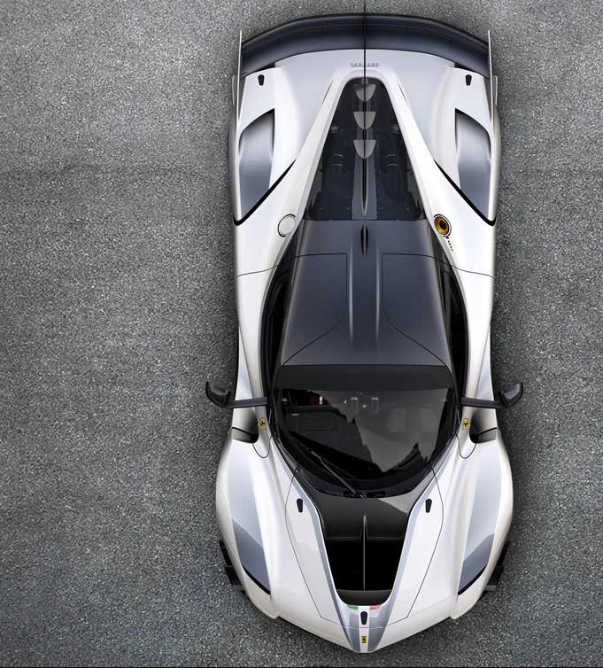 FXX-K Evo gets reduced overall weight and lots of carbon fiber components making it lighter than the normal FXX-K despite adding on elements like the fixed rear wing. The aero package was developed by Ferrari engineers along with Ferrari Style Centre designers for performance and looks. Development of the car spanned over a year and involved extensive wind tunnel time.