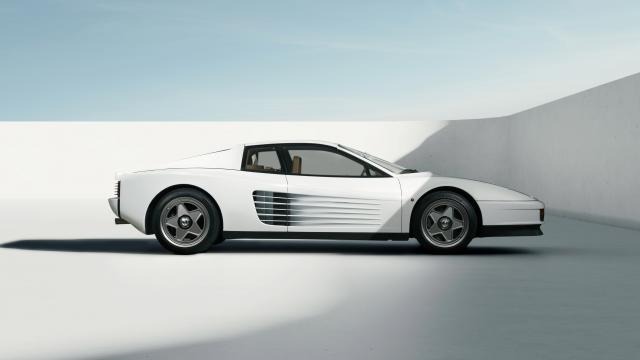 Officine Fioravanti started with an early model Testarossa Monospecchio (single mirror) Monodado, the most desirable of the lot. The entire body is stock except for some new 17-inch front and 18-inch wheels. But underneath, it has Brembo brakes with ABS, Ohlins electronically-adjustable dampers, a nose-lift system, and 12-stage traction control to keep the shiny bits upright. The most impressive part is Officine Fioravanti did all of it while shedding 130kg (287 pounds) of weight over the original car.