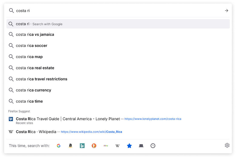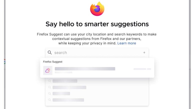 The latest "feature" masquerades as the same kind of search suggestions that other browsers offer the moment you start typing something in the search bar. The difference is that Firefox Suggest also includes suggestions that come from Mozilla's "partners." This is, of course, just a nicer term for advertisers that share some ad-driven profit with Mozilla in exchange for a spot on those suggestions.