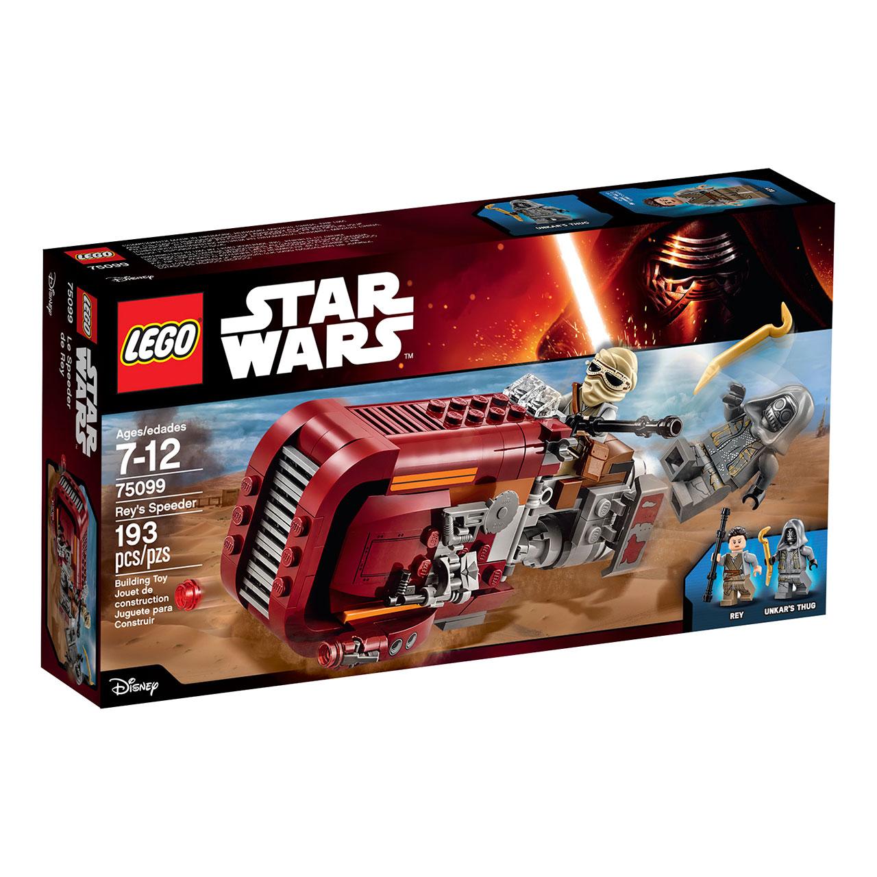 Rey's Speeder has 193 pieces with two minifigs: Rey and Unkar's Thug. This is the most accessible set in the whole lot at $19.99 USD.