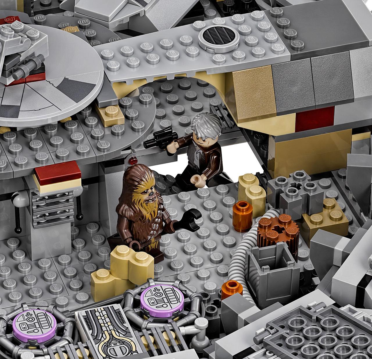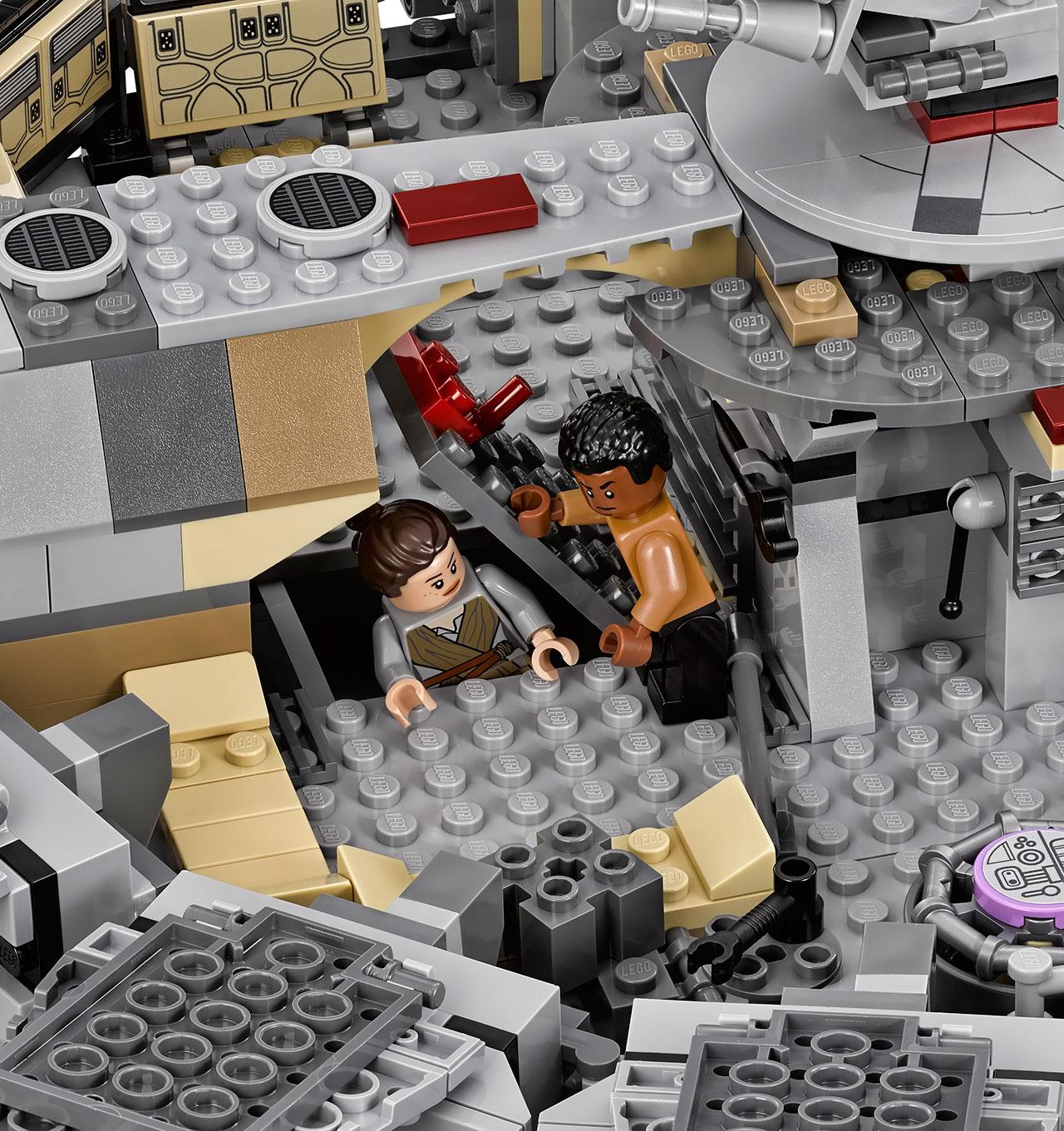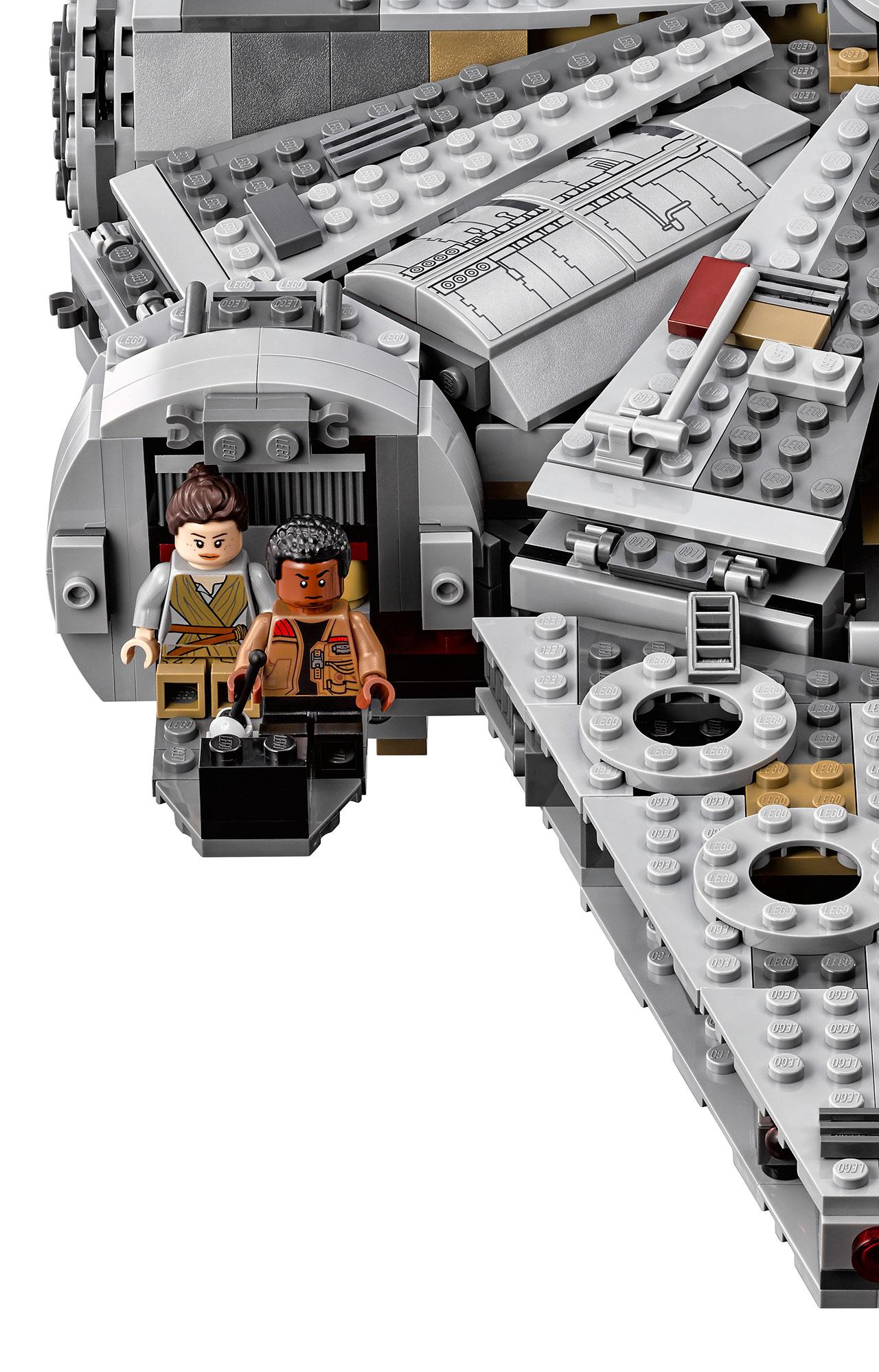 The largest set is the Millennium Falcon – this is the NEW Millennium falcon with new bits and pieces everywhere, with a whole new build. This set comes with Han Solo (the only "old" Han figure you'll be able to buy from any toy set released thus far), Chewbacca, Finn, Rey, and BB-8, as well as a Kanjiklub Gang Member and Tasu Leech. This set will cost you $149.99 USD.
